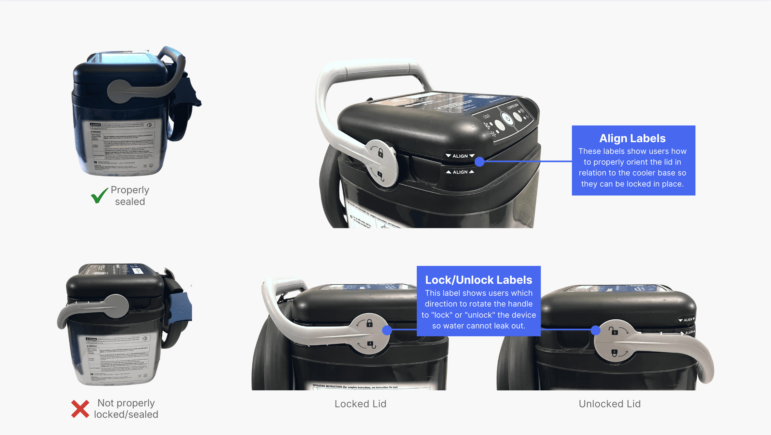 While the digital interface tested well, usability testing surfaced an unexpected issue: 15% of participants misassembled the cooler lid and handle, introducing potential leakage risk.