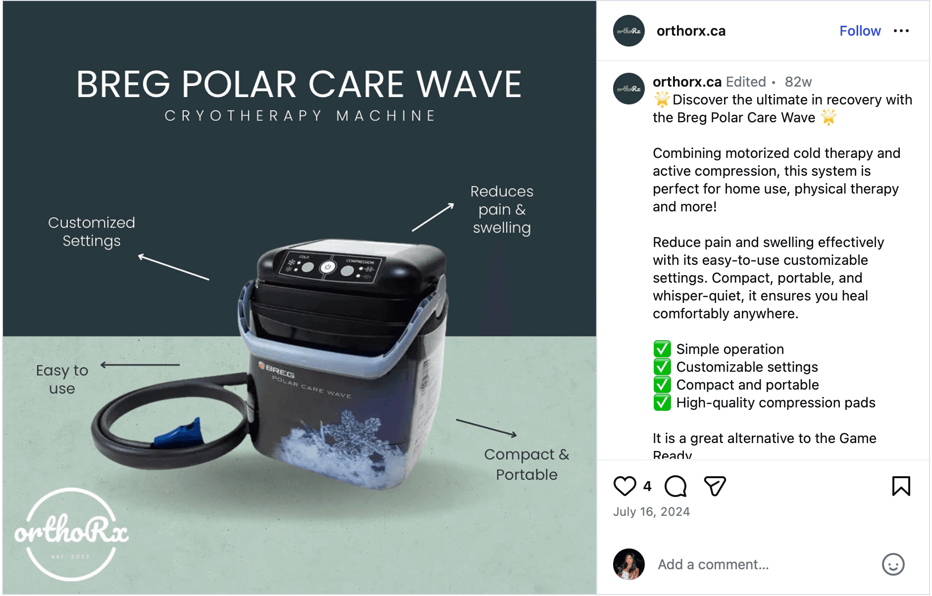 The Polar Care Wave remains part of Breg’s recovery product line.