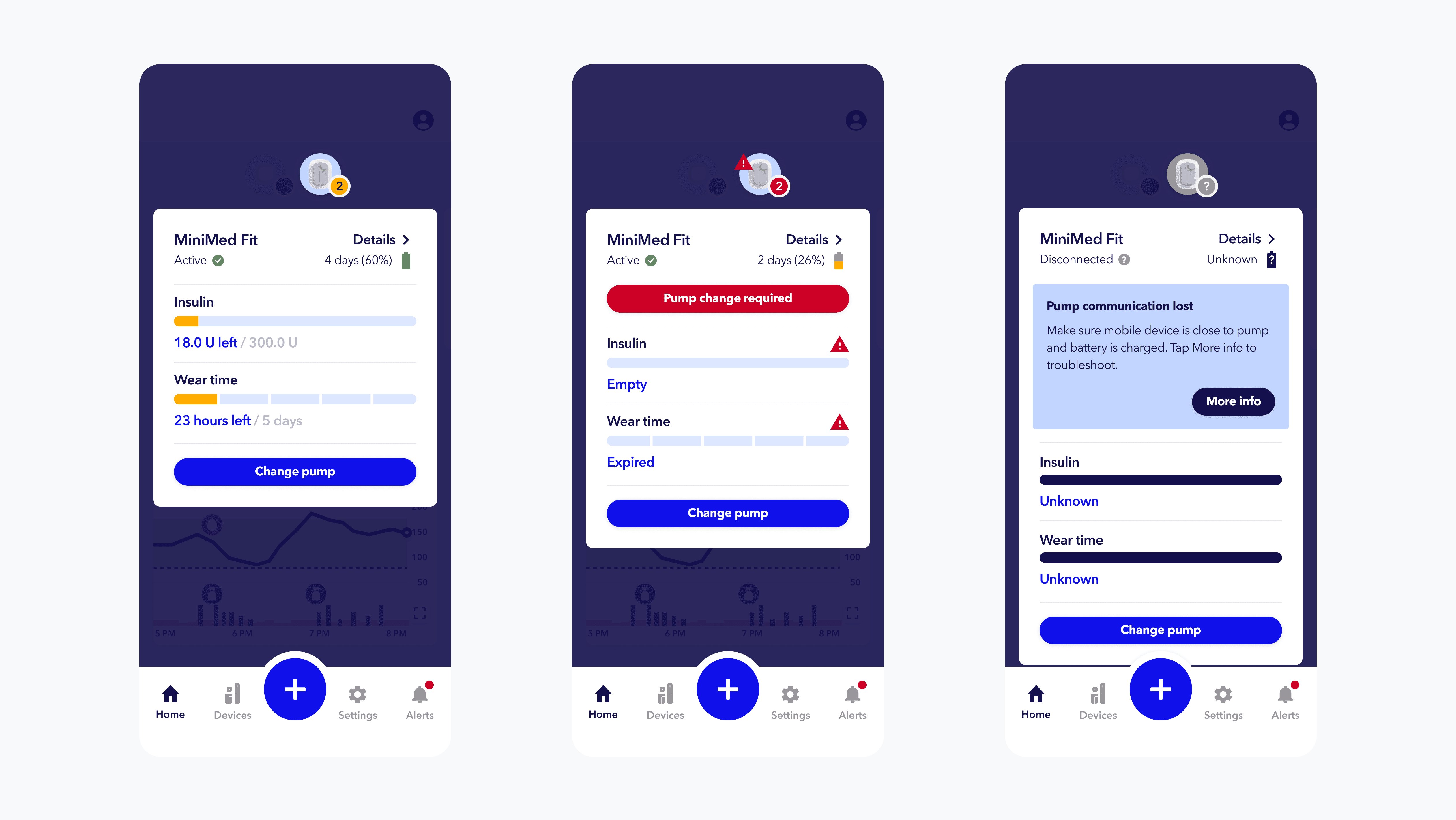 We didn’t just design for things breaking. We designed for real-life moments, like when it’s time to change the pump and users aren’t sure what comes next. By clarifying system states and next steps, we reduced guesswork. In usability testing, participants were able to independently navigate pump changes and resolve common errors without additional guidance.